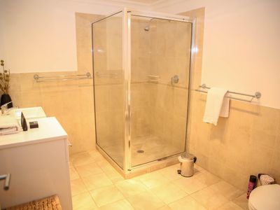 • Walk-in shower with rain shower head