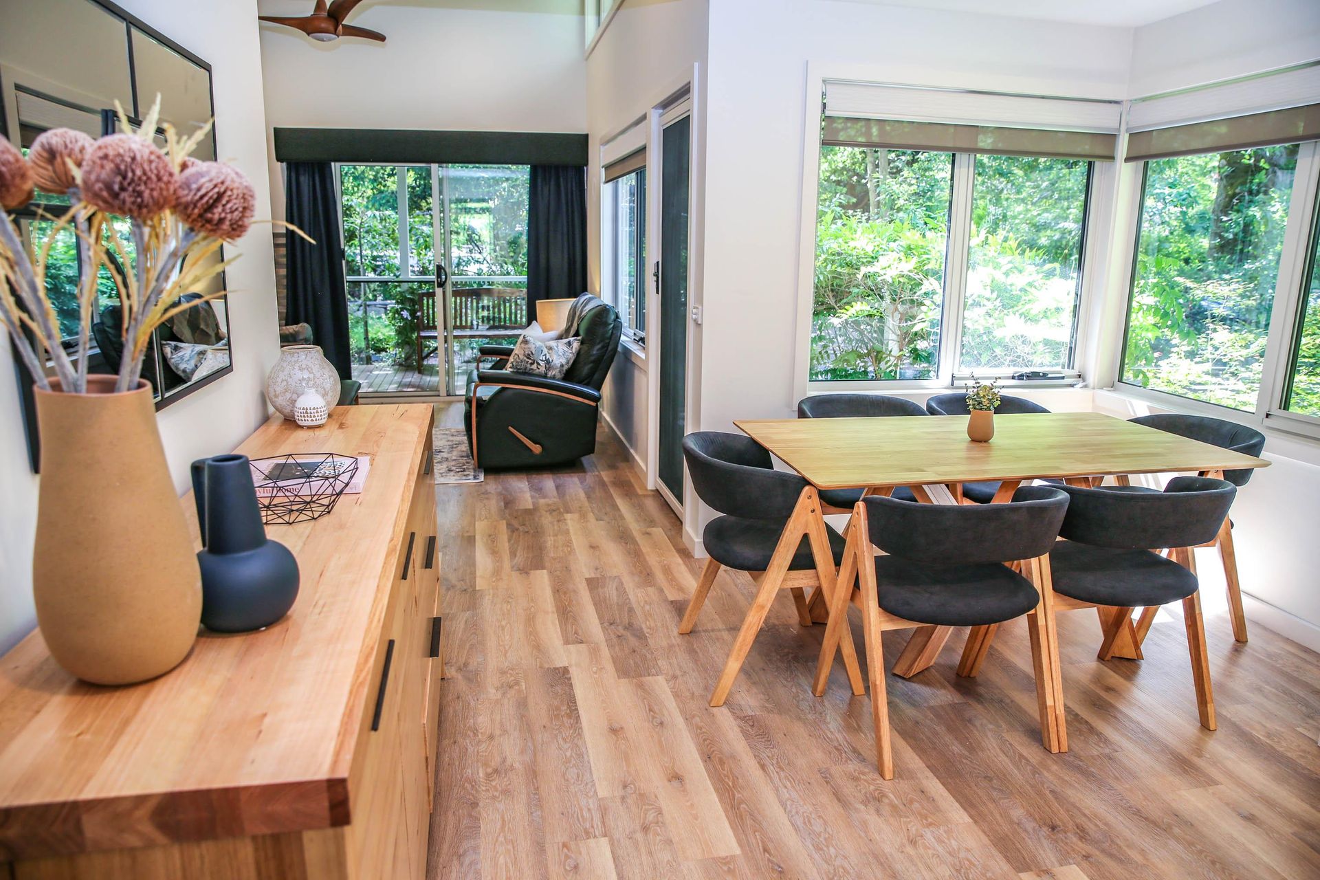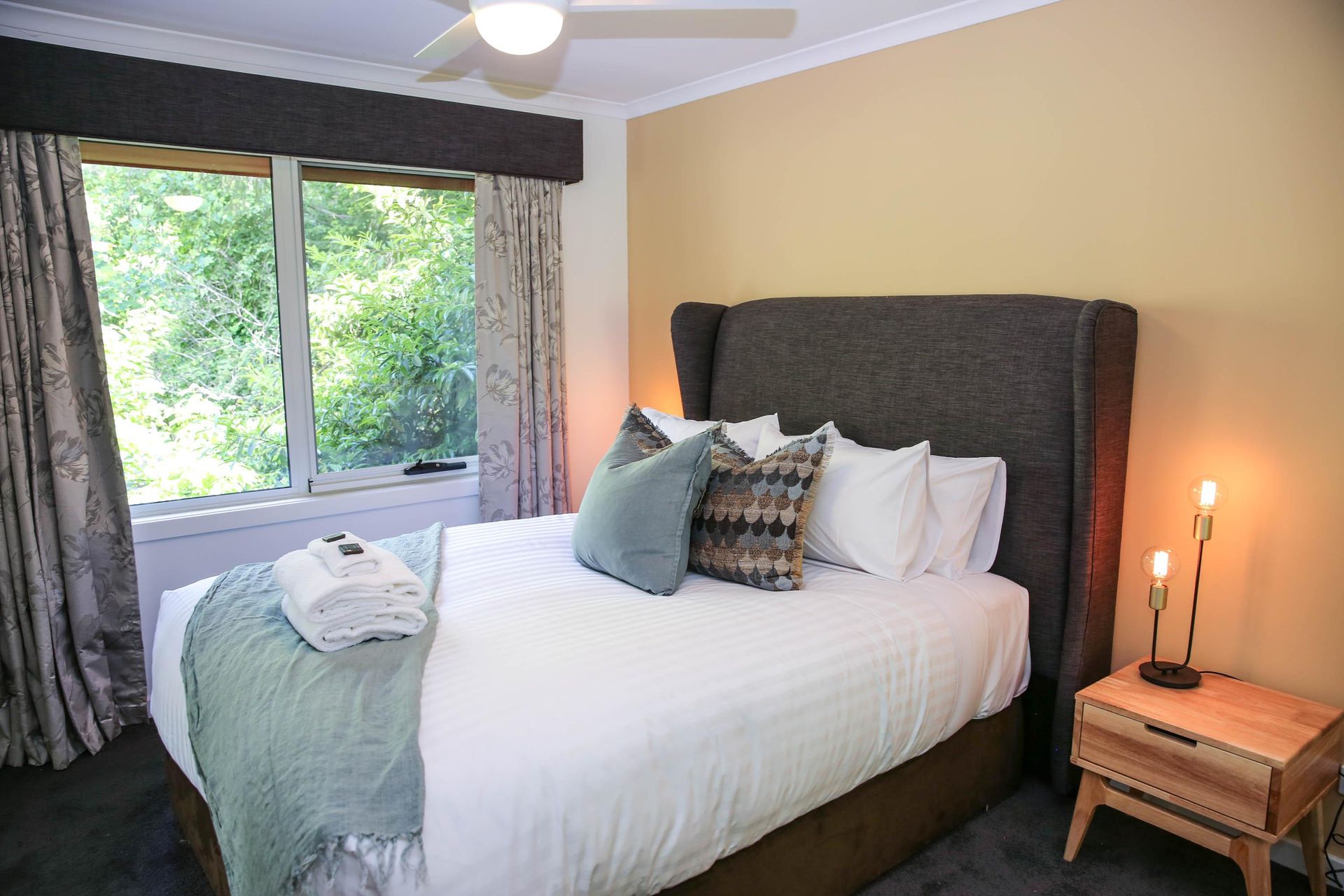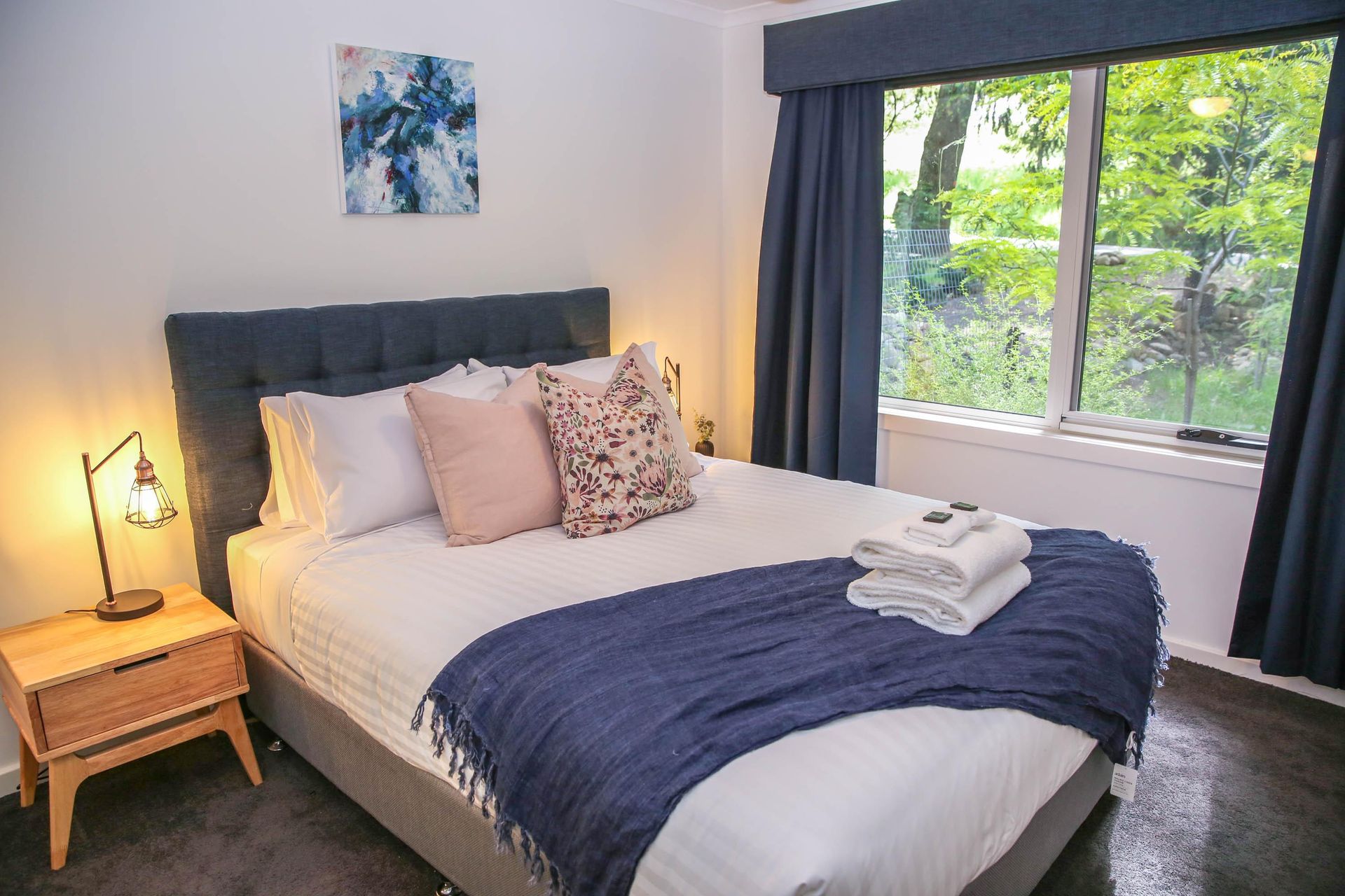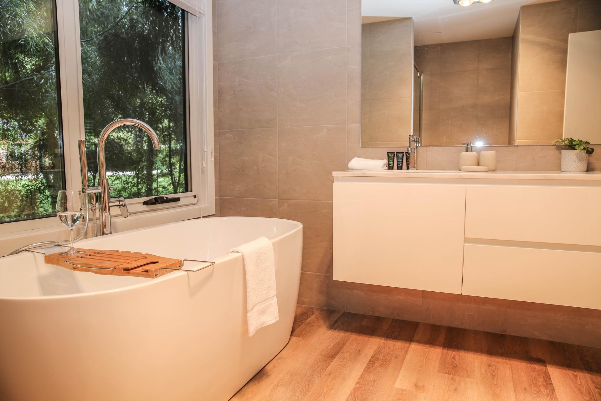Each bedroom is fitted with a luxurious queen bed and ample wardrobe space to really settle in for those longer stays. No bedrooms have an ensuite which allows all guests to access any of the 3 spacious, modern bathrooms. Enjoy a quick rain shower or steep in the deep free-standing bath to rejuvenate after a hard day's fun, read a book or simply gaze out the large window directly into the private outdoor garden, the choice is yours.
