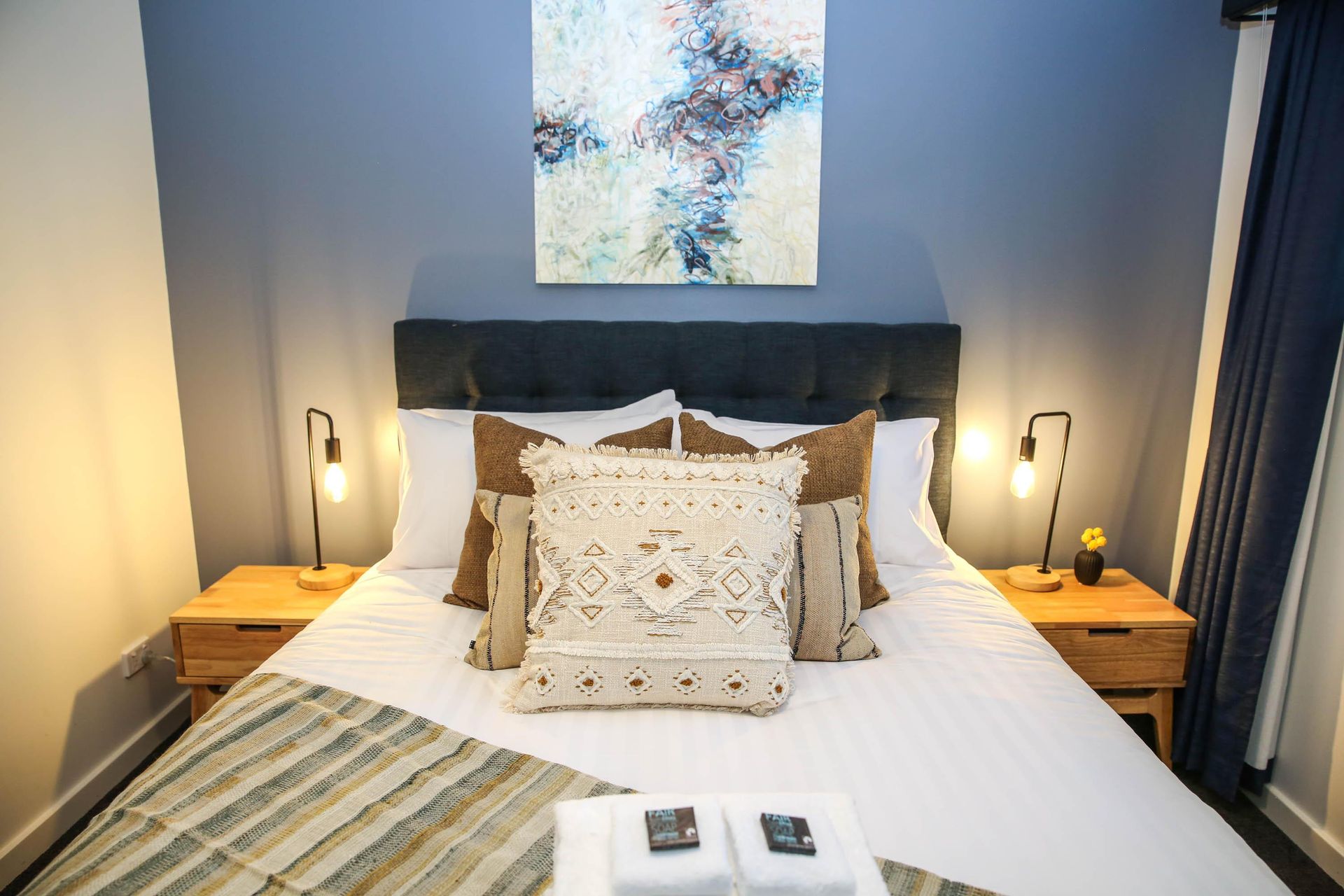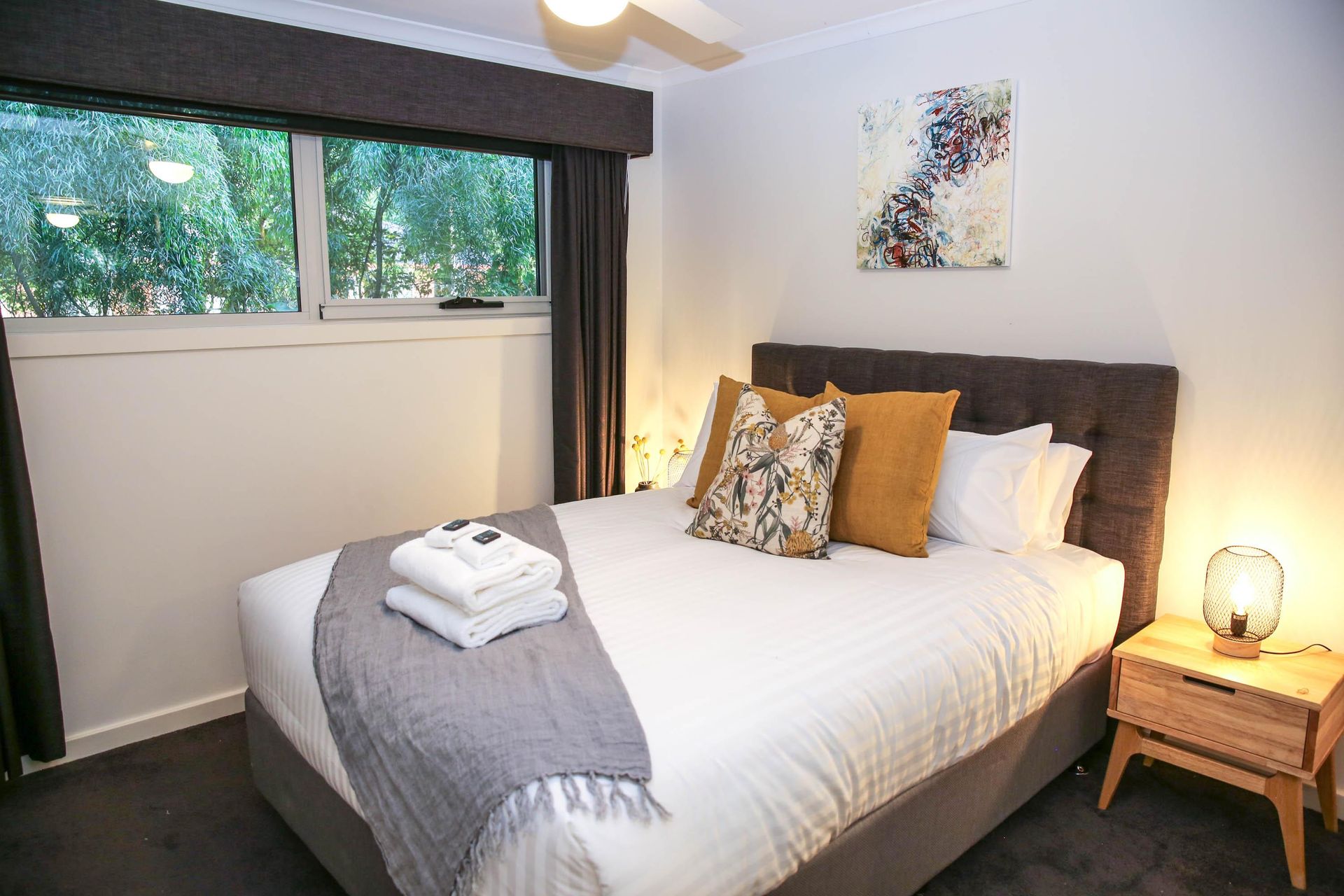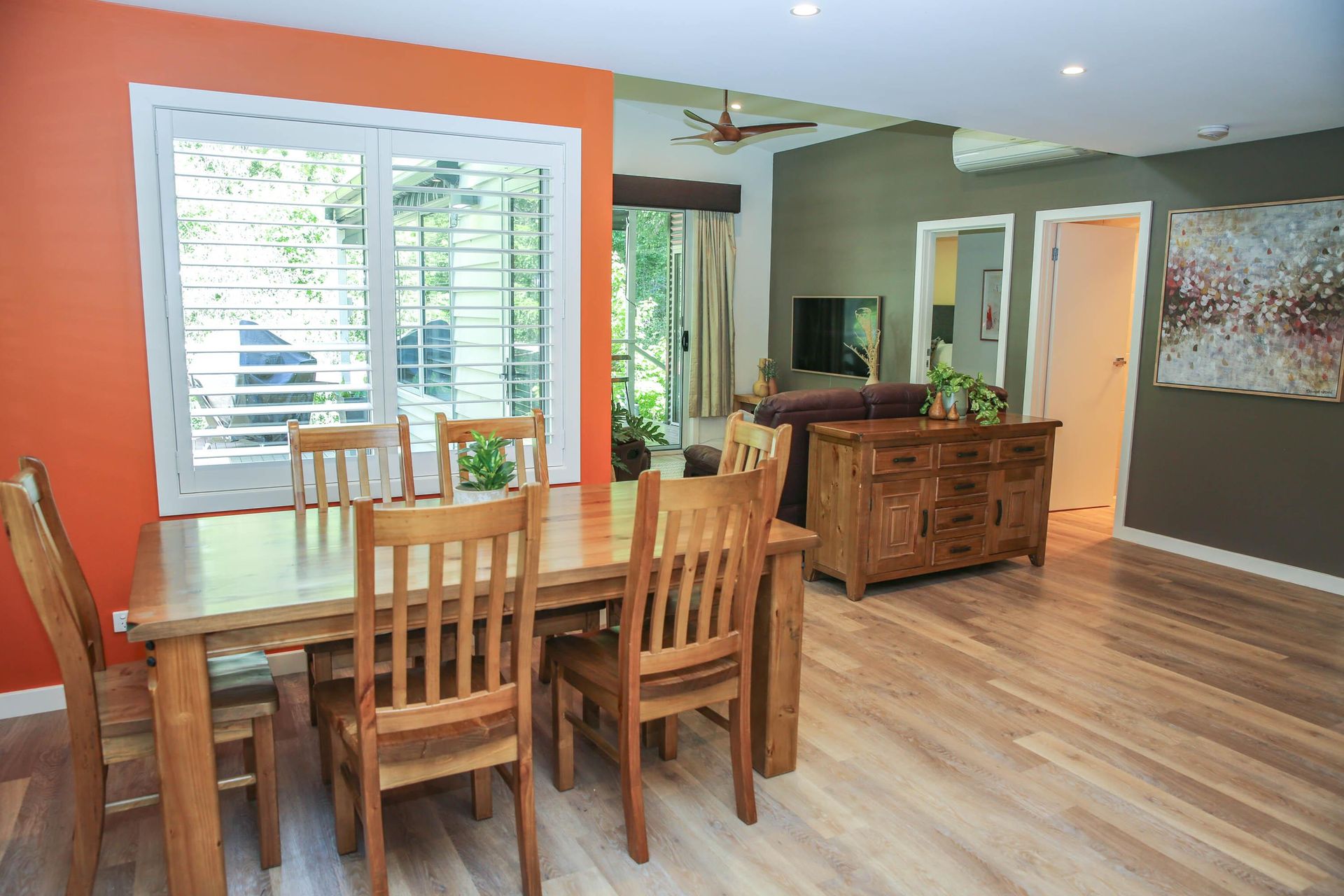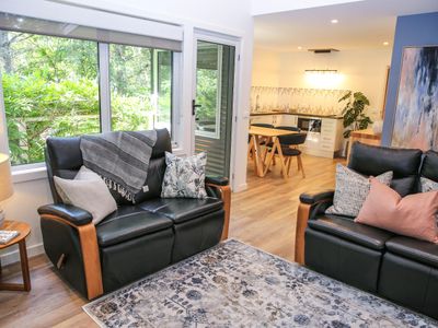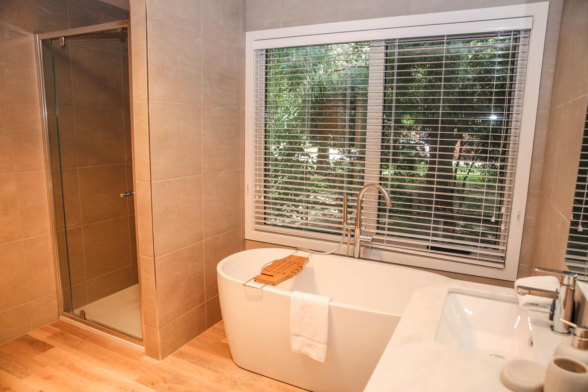 Each bedroom is fitted with a luxurious queen bed and ample wardrobe space to really settle in for those longer stays. No bedrooms have an ensuite which allows all guests to access any of the 3 spacious, modern bathrooms. Enjoy a quick rain shower or steep in the deep free-standing bath to rejuvenate after a hard day's fun, read a book or simply gaze out the large window directly into the private outdoor garden, the choice is yours.