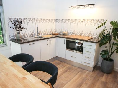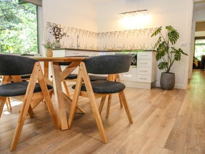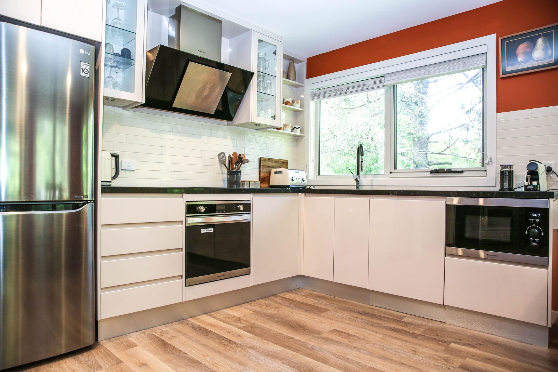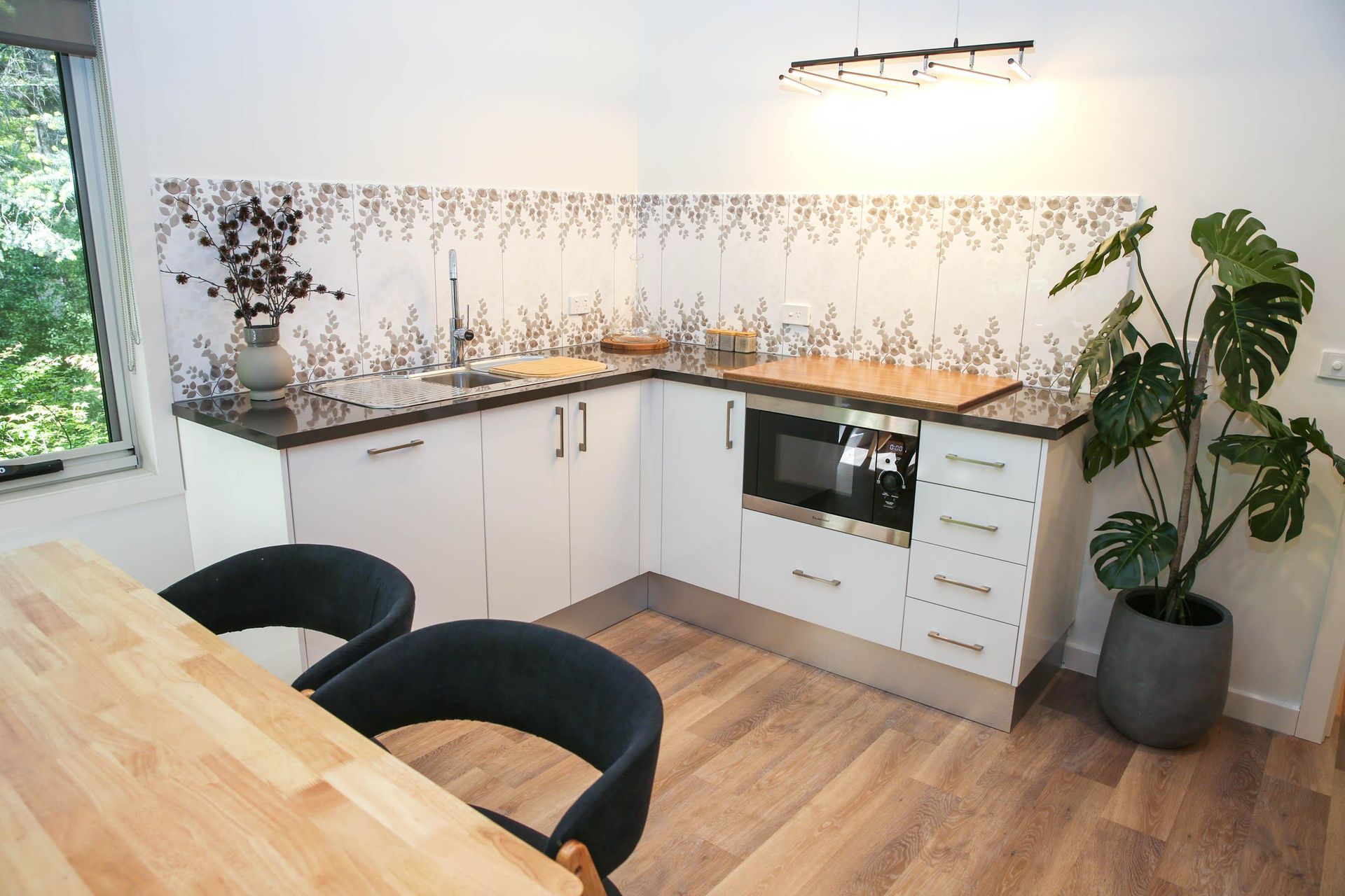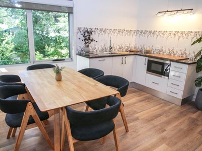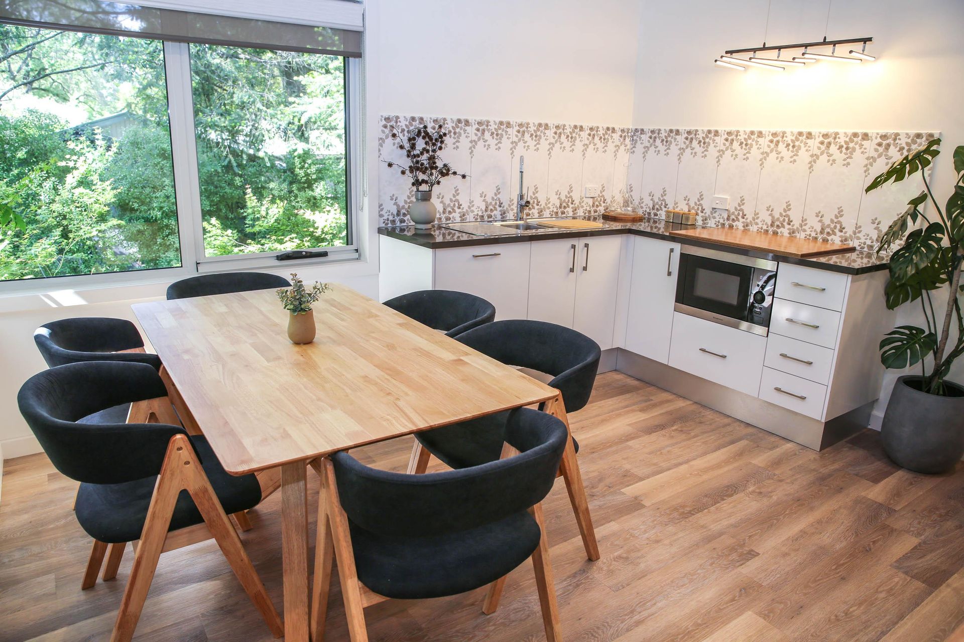 Each bedroom is fitted with a luxurious queen bed and ample wardrobe space to really settle in for those longer stays. No bedrooms have an ensuite which allows all guests to access any of the 3 spacious, modern bathrooms. Enjoy a quick rain shower or steep in the deep free-standing bath to rejuvenate after a hard day's fun, read a book or simply gaze out the large window directly into the private outdoor garden, the choice is yours.