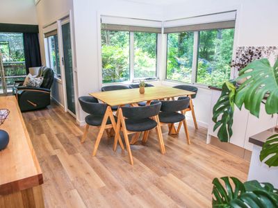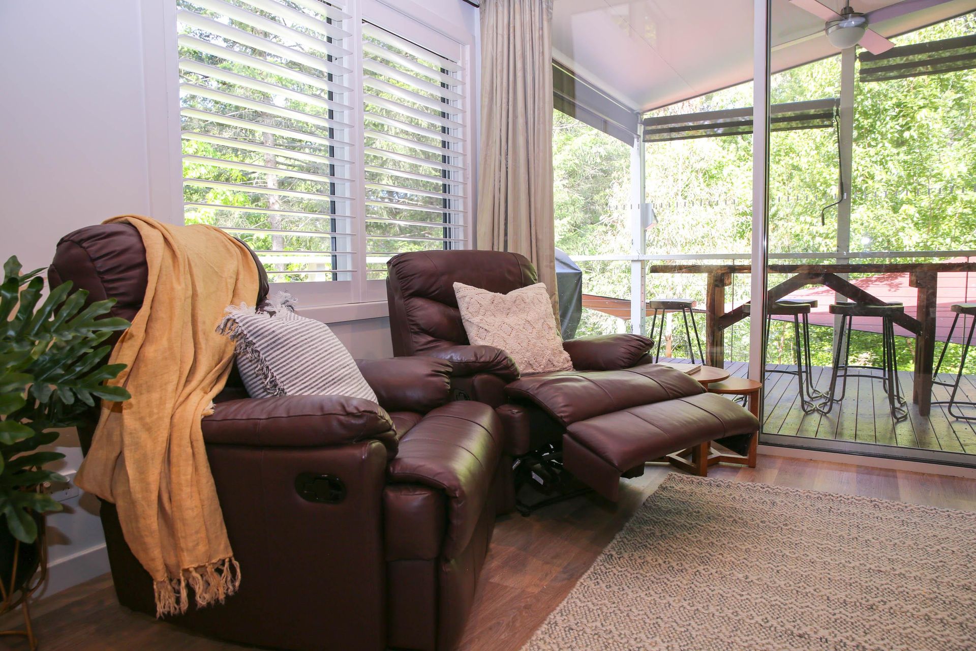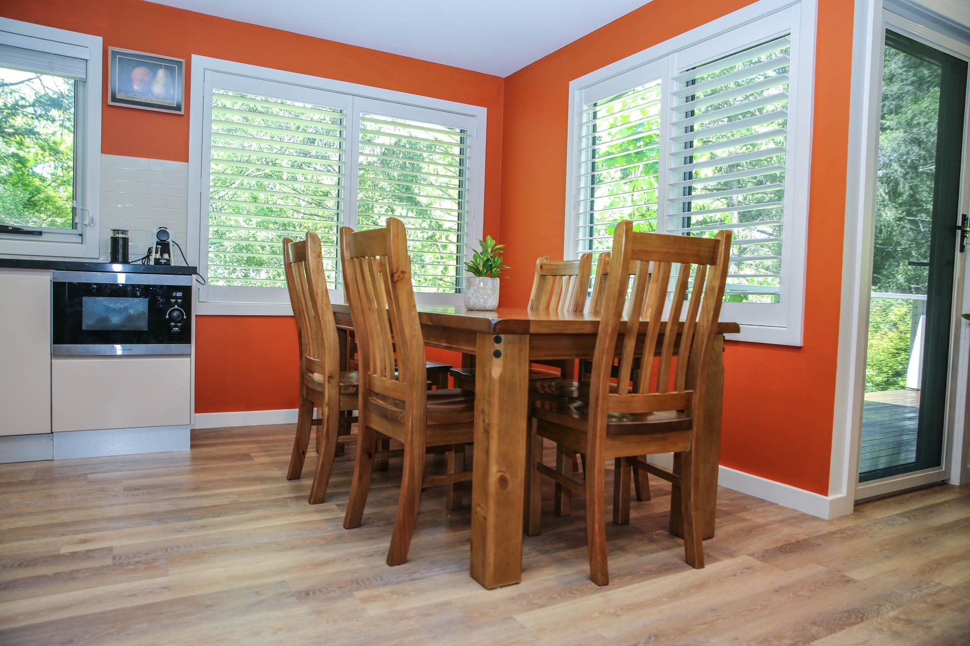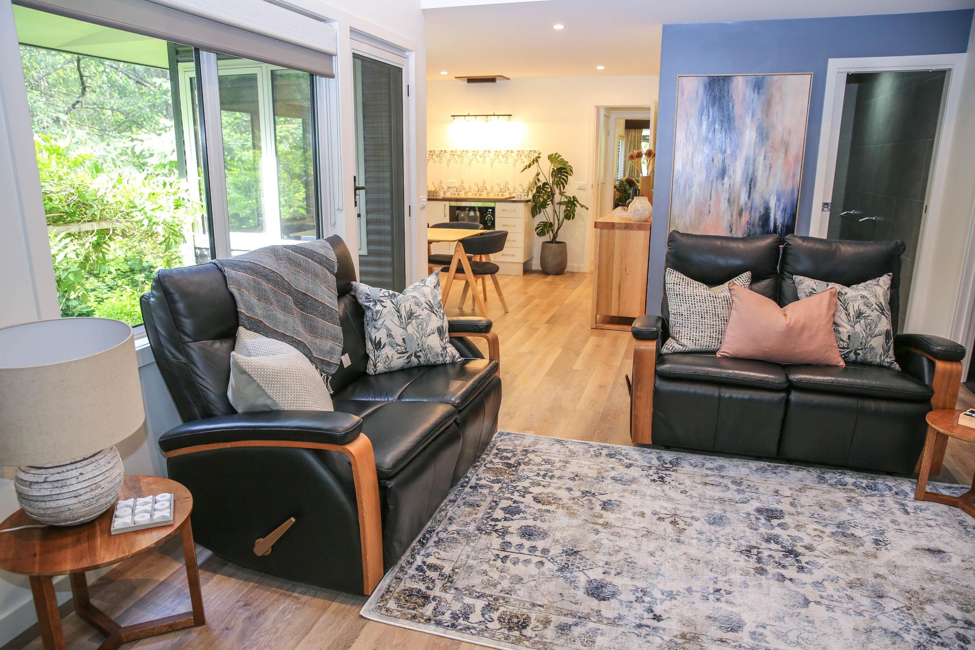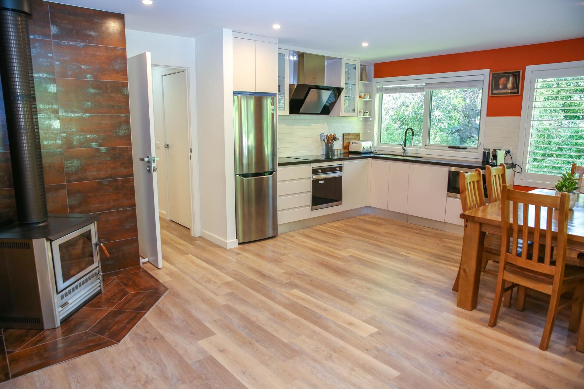 The Poached Pear is 4-bedroom, 3-bathroom home with a space for everyone in the family or group to claim their own private nook. It may be the spacious outdoor garden, elevated deck with private areas on either side of the house, either of the 2 living spaces, 2 dining areas, by either of the 2 wood fires or the serenity of the relaxation room. Need I say more.