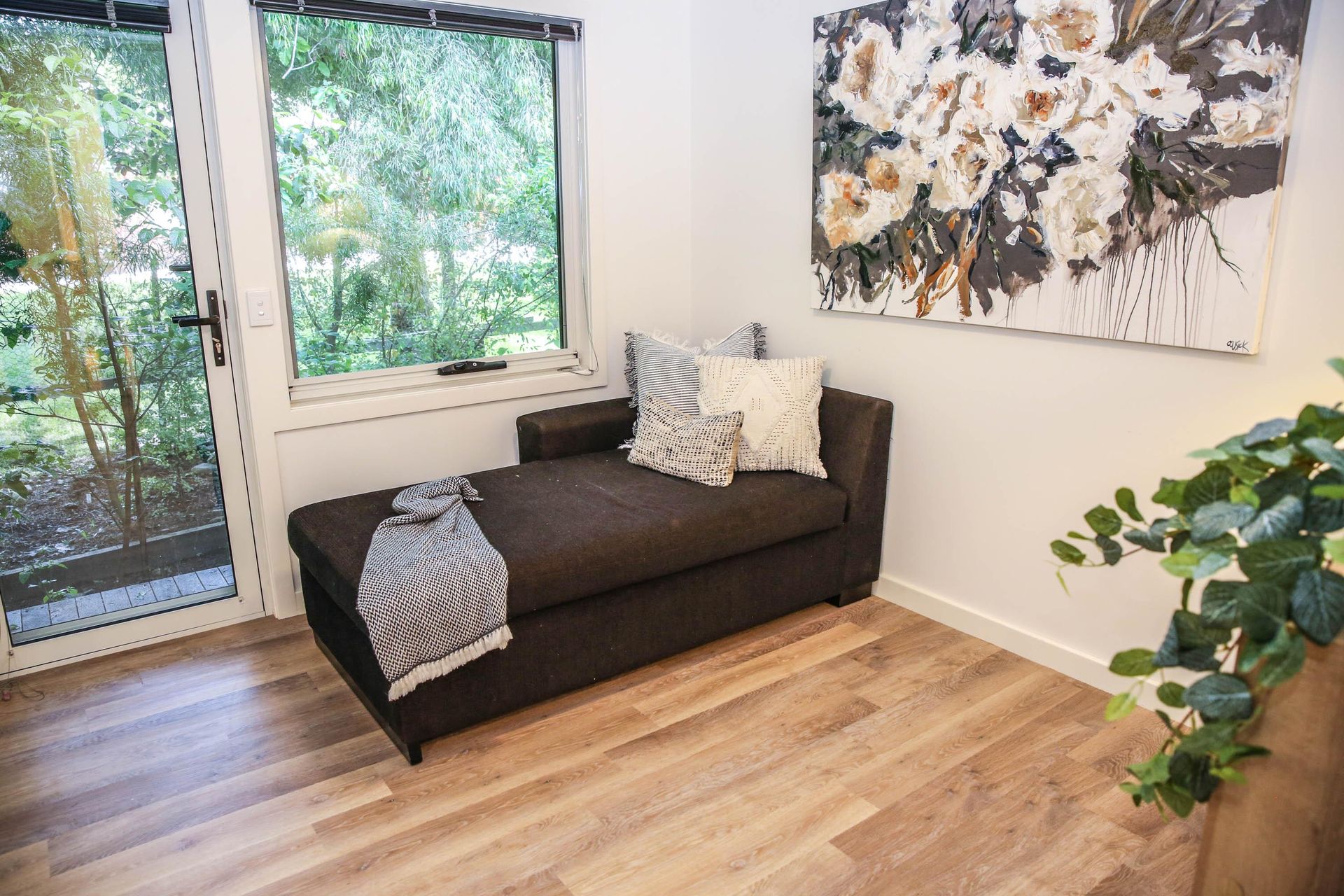 The relaxation room is decked out with a chaise, floor to ceiling window and is the perfect place for a quiet read, a spot of yoga and ideal for a sneaky afternoon nap when no one's looking.