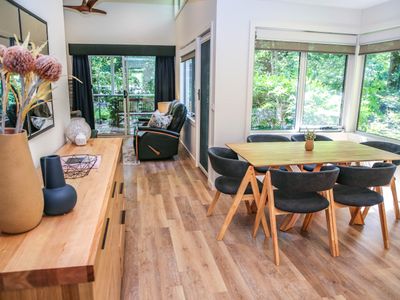 What a sanctuary. This home is truly an oasis. You are welcomed into the home through an abundant garden alive with lustrous flowers, well established trees & and an almost fairy like magic, all while being nestled on the banks of Bakers Gully Creek.