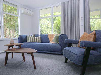 This two-bedroom home is conveniently fitted with a King bed in the master bedroom and two king singles in the second. Both bedrooms have built in robes plus their own reverse cycle systems to ensure everyone is comfortable no matter what the season.