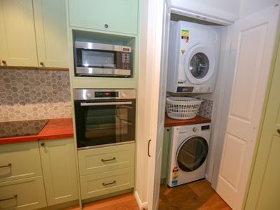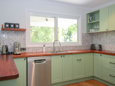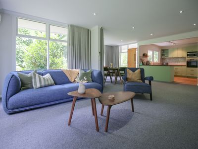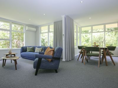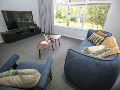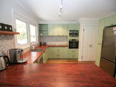 The dining and living areas provide ample seating for everyone to spread out and the revamped country kitchen is fitted with all the modern conveniences and even includes a compact European laundry.