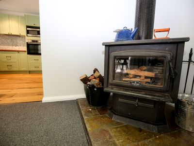 The generous open plan living area includes the kitchen, dining and living spaces all surrounding around a lovely wood fire for those wintery night. This is always a high priority to create a gorgeous romantic atmosphere to create the perfect couple’s retreat.