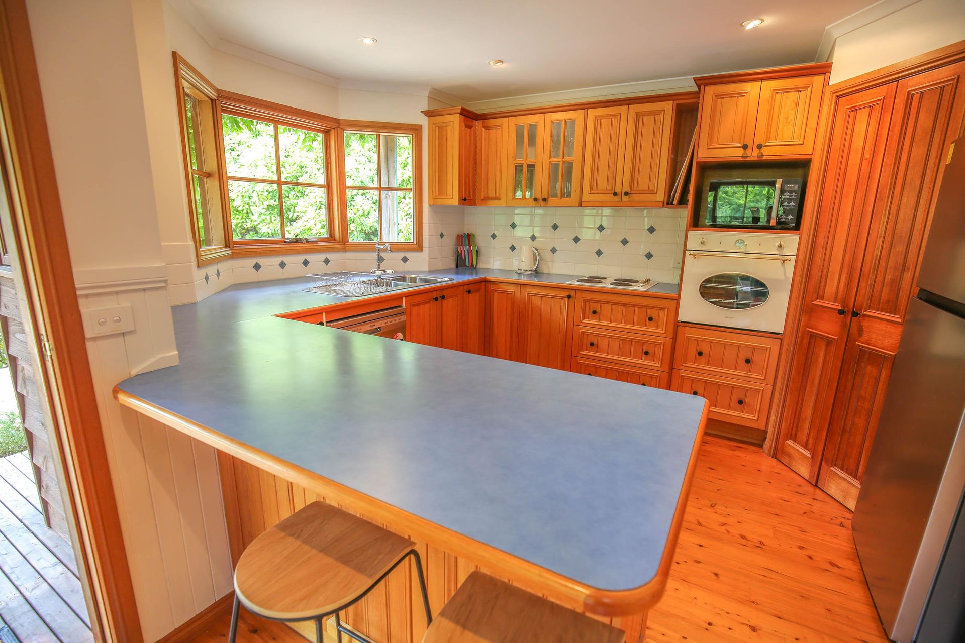 This is the kind of house you could settle into for your entire holiday, relaxing on the shady front veranda, by the beautiful seasonal swimming pool or large poolside area.