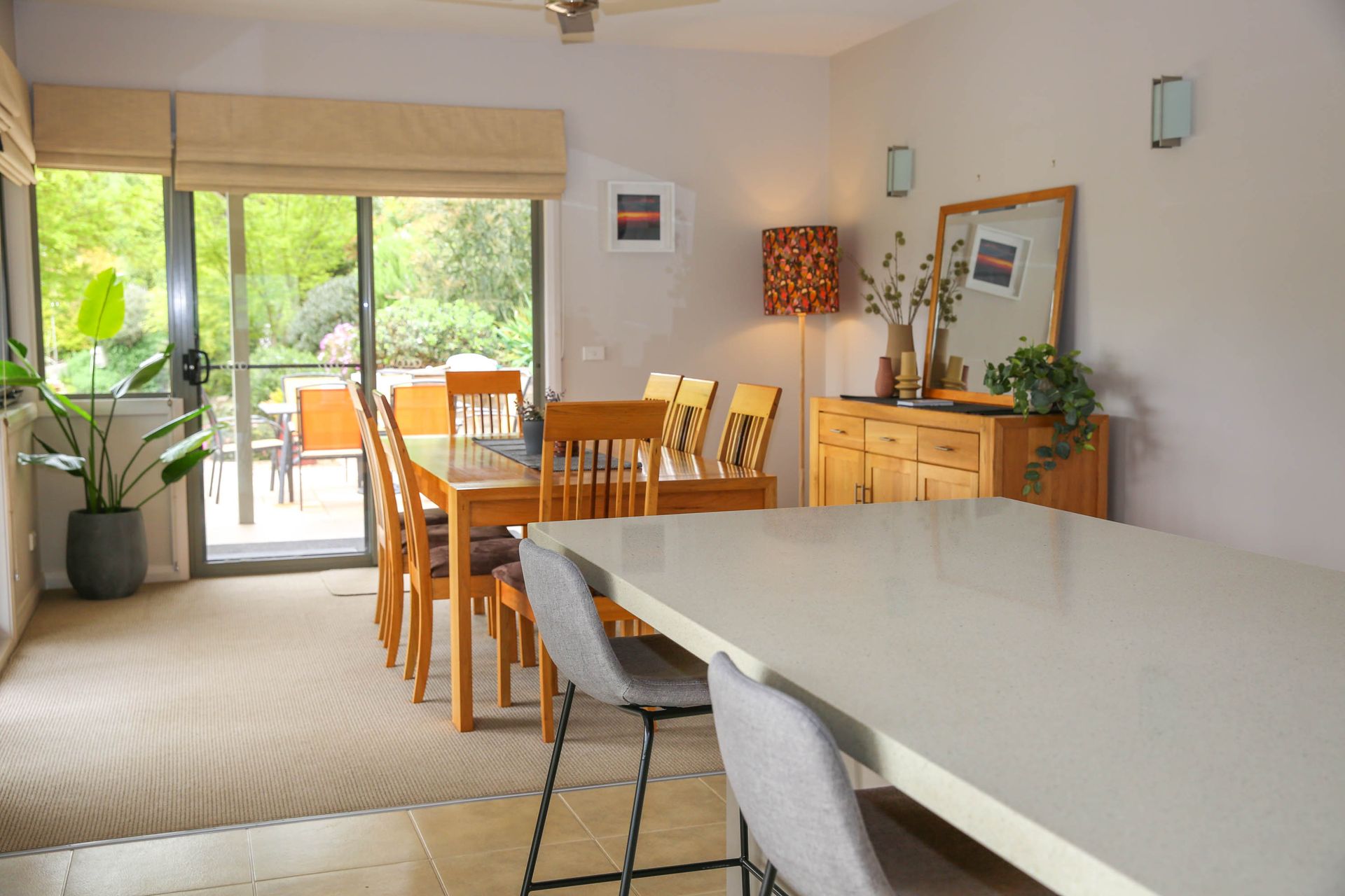 You really could be anywhere when you arrive at this holiday home. What strikes you first are the gardens, the views and the smells from the surrounding gardens and nearby bushland. The meticulous, much-loved gardens are joy of their own and add to the experience of this home. Seating is spotted throughout the gardens, tucked under the shade of trees & multiple al fresco. seating areas positioned for you to enjoy at different times of the day .