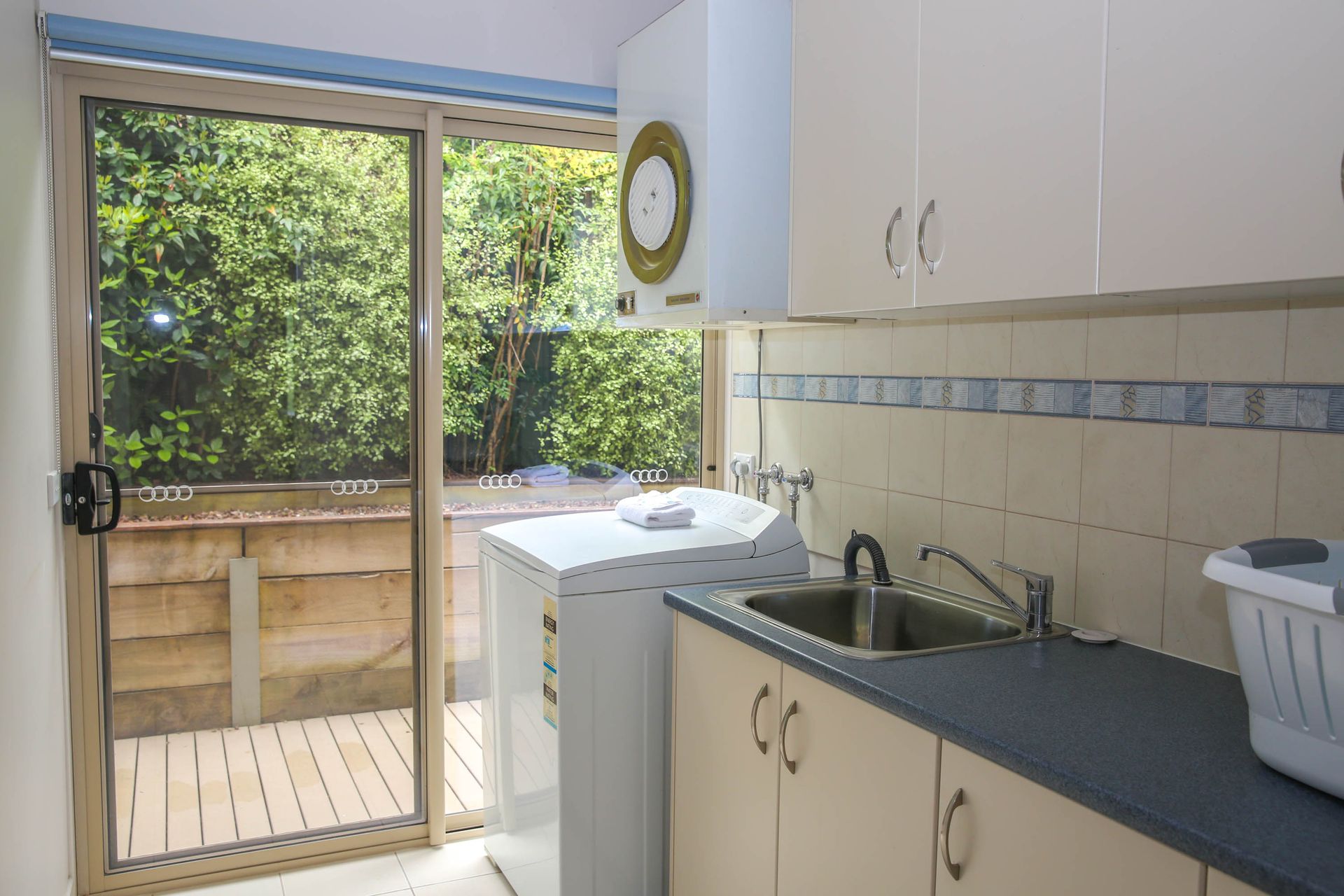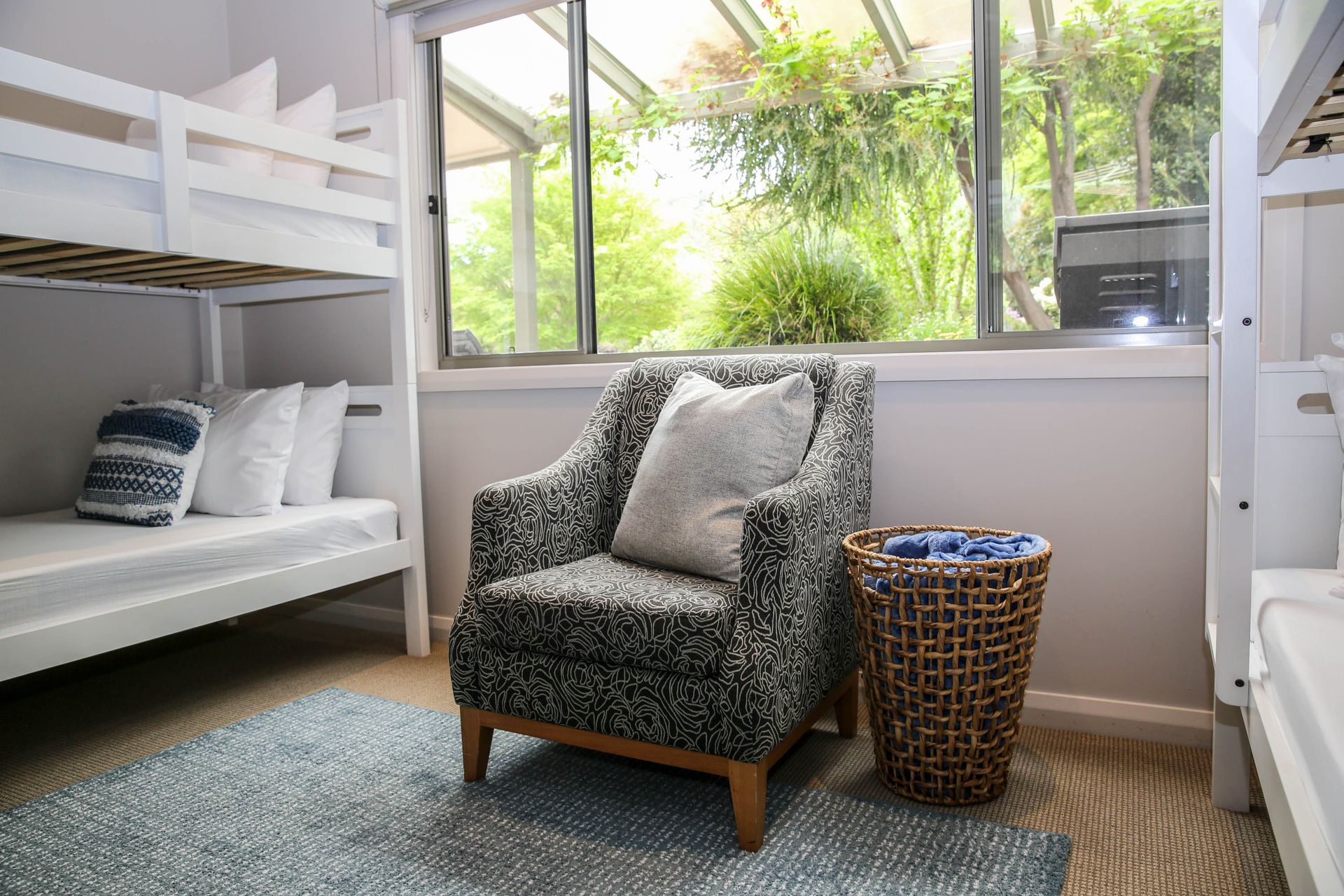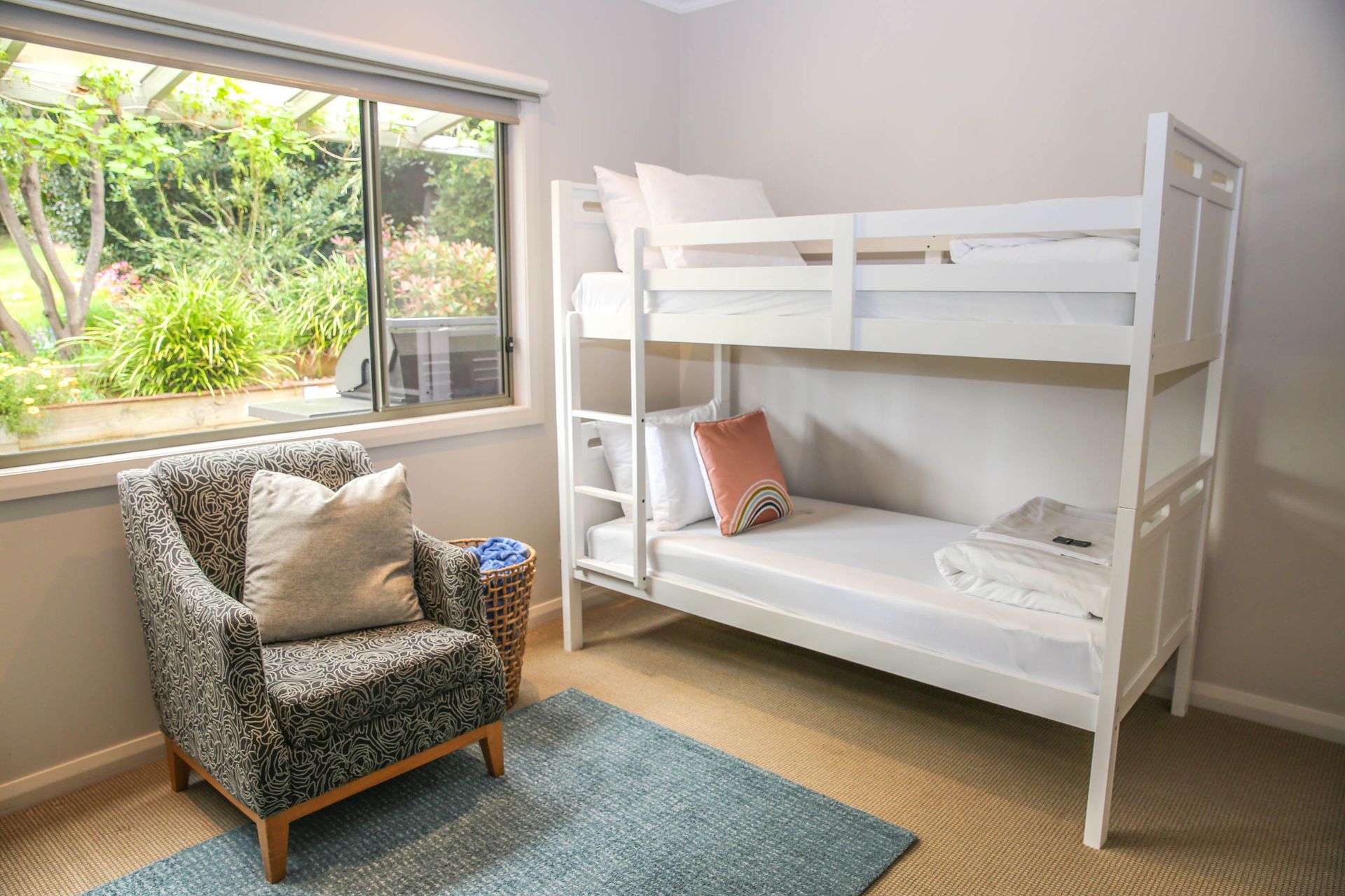 The second bedroom has a queen & the third bedroom, fitted with 2 bunk beds for the kids, is cleverly separated by the shared bathroom and separate laundry to keep the kids tucked that little bit further away.