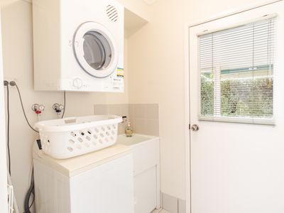 Your well equipped kitchen with oven/stove and appliances means you can feed the tribe in the comfort of your own home. The kitchen leads into your own laundry with washer & dryer then out to your own courtyard and carport.